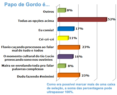 A intenção da pesquisa era descobrir o que os nossos ouvintes acham do Papo de Gordo e que assuntos eles gostariam que a gente abordasse.