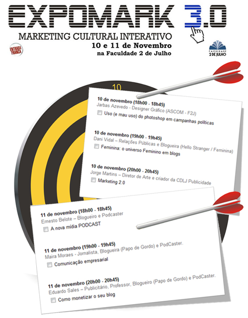 O Papo de Gordo é um dos apoiadores dessa iniciativa. E para provar que mergulhou de cabeça na Expormark 3, Dudu Sales e Maira Moraes farão palestras no evento. No dia 11, às 20h, o arroz de festa da podosfera brasileira ensinará “Como monetizar o seu blog”. Antes dele, às 19h, a gordinha yeah yeah falará sobre “Comunicação empresarial”.