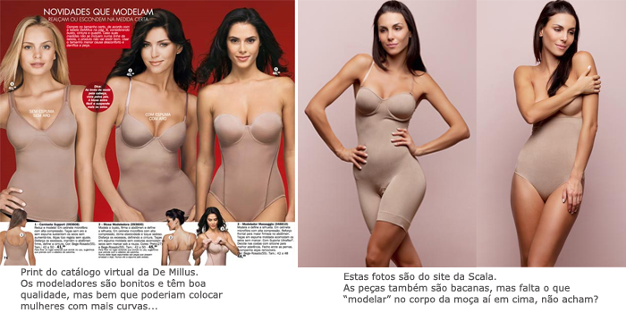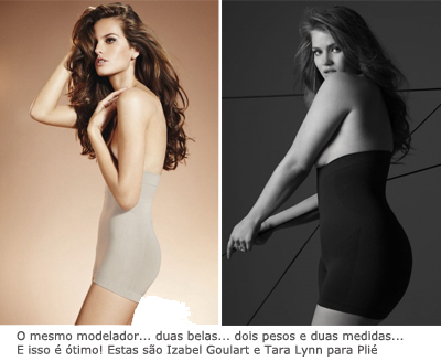 O problema nao esta nem em usar a modelo com curvas ou sem, e o uso do photoshop que pode ser notado descaradamente nesse ensaio da marca da gloria. portanto se tornou hipocrita! Eu ja compreu o produto testei e nao aprovei ele nao diminui em NADA a sua forma, pelo contrario modela as costas puxando tudo para frente dando a impressao que vc esta gravida, ou seja suas costas dimunuem e sua barriga aumenta :/