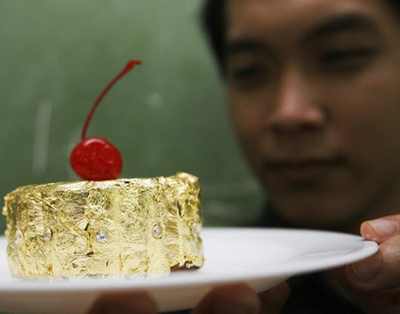 O ouro é um símbolo de riqueza. Mas, mesmo que você ganhe na Mega-Sena acumulada, por mais dinheiro no banco que venha a ter, se imaginaria comendo ouro por aí? Então veja este lindo bolo da lua – tradicional prato chinês preparado para o festival do meio-outono – que foi preparado nas Filipinas pelo chef Angelito Araneta Jr. A iguaria inclui, além do ouro 24 quilates, uma série de diamantes artificiais, com o custo médio de R$ 3.130,00!