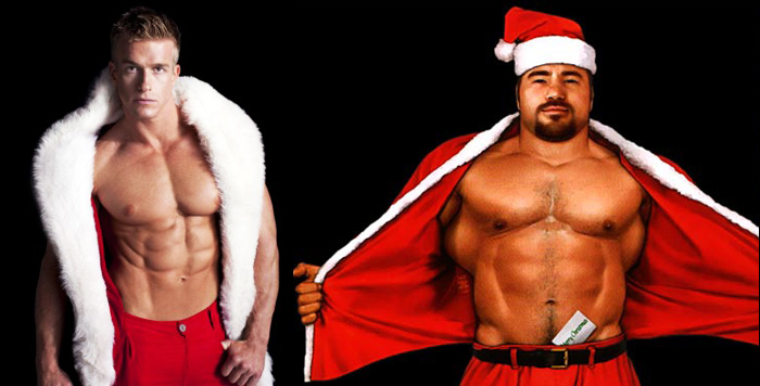 E eu nunca deixaria um sobrinho meu sentar no colo de um papai noel musculoso como estes aí…fotos…