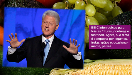 Atualmente, a dieta de Bill Clinton é composta por legumes, frutas, grãos e, ocasionalmente, peixes. Em poucos meses, o estadista já se gabava de estar pesando o mesmo que nos anos de colegial e ainda foi escolhido “O Homem do Ano” pela PETA (People for the Ethical Treatment of Animals).
