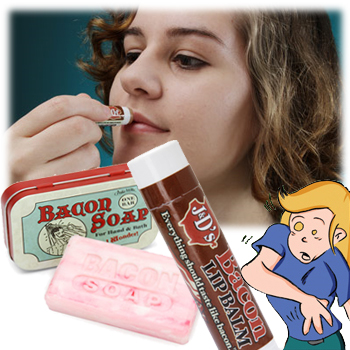 Achou estranho? Pois saiba que tem mais: você pode ficar com cheirinho e gostinho de bacon!!! Para isso, basta usar o Bacon Soap e o Bacon Lip Balm. Mas a coisa não para por aí… Dá para surpreender os amigos quando for pagar alguma coisa e sacar do bolso a Bacon Wallet.