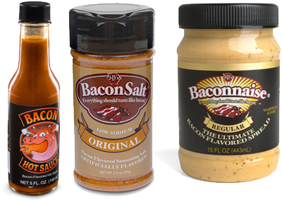 Você é tão aficionado em bacon que resolveu deixar todas as suas comidas com esse toque especial? Então a solução é usar o Bacon Hot Souce, o Bacon Salt, e a Baconnaise. Com um molho apimentado, um sal e uma maionese dessas, qualquer refeição vai fazer o maior sucesso. (ou não!)