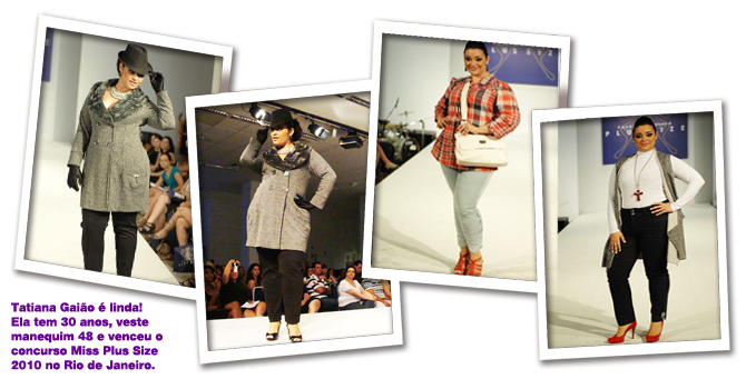 Tatiana Gaião tem 30 anos, veste manequim 48 e venceu o concurso Miss Plus Size – realizado em outubro do ano passado, no Rio de Janeiro. Ela conta que a inscreveram no concurso depois de ter feito um book fotográfico. Na época, concorreu sem muita pretensão e acabou vencendo!