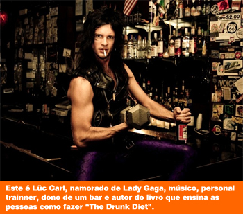 Drenagens de criatividade à parte, a Dieta da Bebedeira (ou Drunk Diet, como está sendo conhecida por aí) à qual Lady Gaga credita a sua boa forma foi “inventada” por Lüc Carl, seu namorado – que além de músico, é personal trainner e dono de um bar. Ele acaba de escrever um livro explicando como eliminar alguns quilinhos sem deixar as baladas de lado.