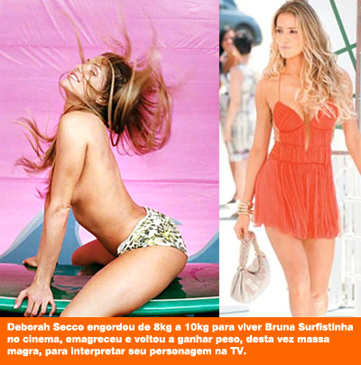 Recentemente, Deborah Secco também encarou o efeito sanfona. Ela engordou 8kg a 10kg para ficar gostosa e interpretar Bruna Surfistinha. Terminadas as gravações, emagreceu, mas voltou a ganhar peso para viver seu personagem em Insensato Coração. Foram aproximadamente mais 6kg de massa magra.