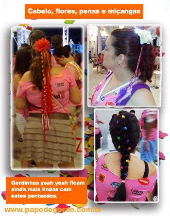 Claro que uma gordinha yeah yeah não vai se conformar apenas em customizar a sua camisa de camarote ou abadá. Tem que cuidar do penteado para arrasar!