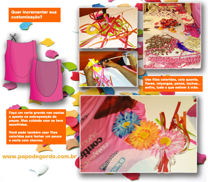Aaaaah! Mas não para por aí. Você não precisa ficar presa a essas dicas de como customizar uma camisa de camarote e abadá. Ficou muito basiquinha, né? Dá pra incrementar muuuuuuito mais. Veja como: