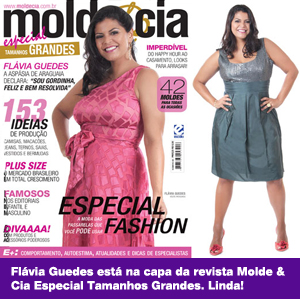 Flávia Guedes está também na capa da revista Molde & Cia Especial Tamanhos Grandes. Na publicação, a atriz ficou linda nas fotos em que mostra os roupas GG e não poupou atitude em sua entrevista.