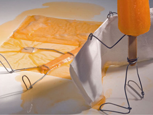 Com a ajuda de arames, Terry Border usa bananas, ovos, pães, facas, colheres de pau e até uma pedra de gelo para compor