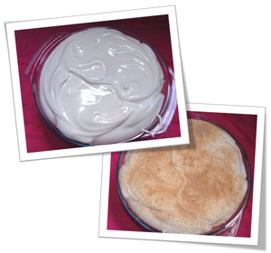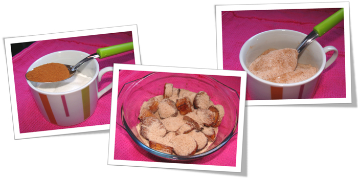 OBS: Reserve uma colher de açúcar com canela para colocar por cima do suspiro e dar um toque final no prato.