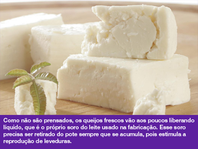Por causa da maior quantidade de umidade, os queijos frescos (ou brancos) devem ser conservados dentro da geladeira.