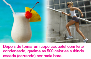 E como feijoada pede uma caipirinha, o estrago vai ser maior. Se jogue na musculação por 1h20 para compensar cada copo que tomar. OBS: Estamos considerando as 310 calorias que um copo de caipirinha de vodca com limão e açúcar tem.
