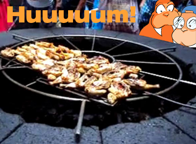Eu fui lá! Mas não comi o frango… a “churrasqueira” é aberta aos visitantes que cheguem lá por qualquer motivo (o restaurante fica no meio de rochas vulcânicas e é preciso permissão especial para chegar lá), mas para comer um franguinho desse o comilão tem que desembolsar uma grana alta… Vale a pena pela curiosidade e para ver que o fundo dessa churrasqueira na verdade é rocha quase derretida…