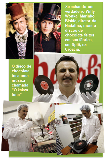 Marinko Biskic, diretor da fábrica de chocolates Nadalina, localizada em Split, na Croácia, levou isso ao pé da letra. Se achando um verdadeiro Willy Wonka, ele inventou um disco de chocolate que toca música de verdade!